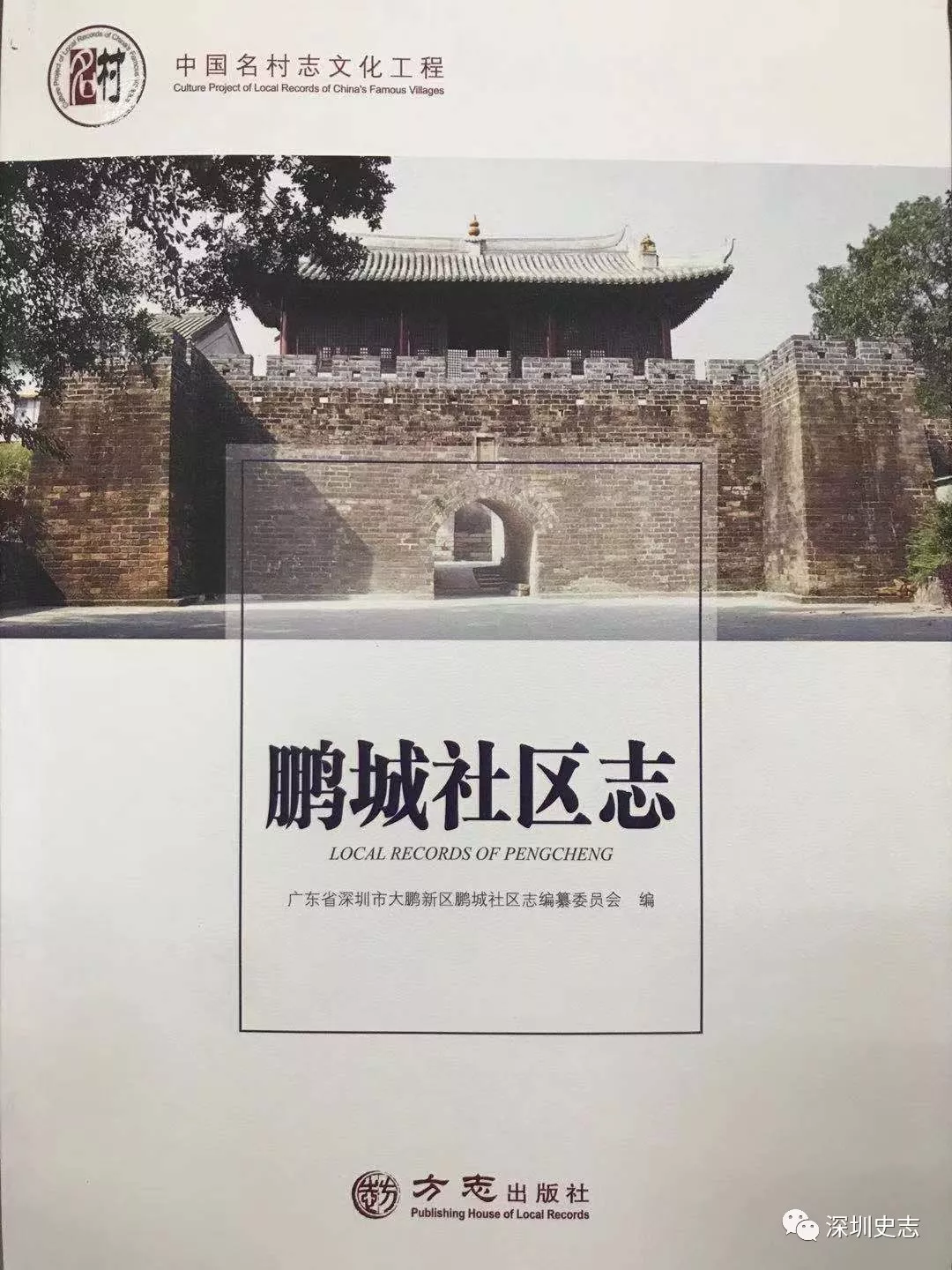近日,深圳首部入选中国名村志文化工程的志书——《鹏城社区志》正式由方志出版社出版发行。志书内容包括社区概览、兵事春秋、文物胜迹、旅游开发、艺文杂记、风土民情、名人与名村等,较好的保留了鹏城社区乡土文化的原貌。中国名村志文化工程由中国地方志指导小组办公室、中国名村志丛书编纂委员会举办。《鹏城社区志》由大鹏新区综合办公室组织编纂,2017年9月启动编纂工作。志书编纂人员严格按照要求、狠抓质量进度,一是深入一线,踏踏实实收集资料。认真查阅《新安县志》《龙岗区志》等相关史料及民间资料,广泛搜集各方面的素材;深入居民家中,对鹏城村籍的老干部、年长村民以及海外回乡人员进行采访。二是集思广益,多方面征求资料和意见。在《深圳晚报》《深圳侨报》等媒体进行专题宣传报道,并向香港大鹏同乡会、美国纽约大鹏同乡会、美国纽约大鹏育英总社、荷兰旅荷大鹏同乡会等海外社团发布修志信息,广泛征集鹏城村相关资料并征求意见。得到赖荣茂等居住在港澳台等地、原籍为鹏城村人士的大力支持,收集了如《赖氏世系简谱》等珍贵的史料。三是突出特色。设置了《兵事春秋》等类目,反映鹏城村作为明清两代岭南重要海防要塞,在抗击倭寇、海盗和葡萄牙、英国侵略者的历史上的重要地位。此外,鹏城村因地处广东三大民系(广府、客家、潮汕)的交汇点,海防文化、客家文化、渔农文化等在此交融汇聚,造就出鹏城村独特而鲜活的民俗风情和方言,因此设立“大鹏话”章节反映这一文化特色。