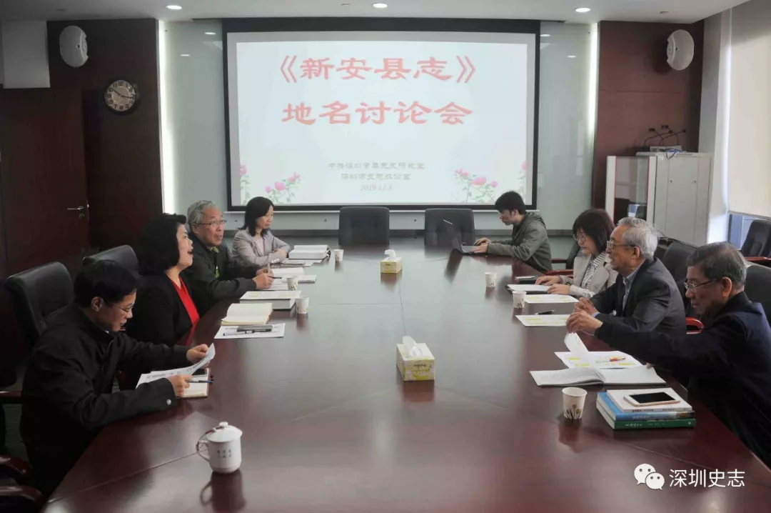 2019年12月3日,香港地方志中心和深圳市史志办公室联合举办的《新安县志》村名讨论会在深圳方志馆召开。香港地方志中心顾问刘蜀永,深圳市史志办公室二级巡视员黄玲以及方志处工作人员,深圳地情专家廖虹雷、张一兵,共7人参加讨论会。受深圳市史志办公室主任杨立勋委托,黄玲主持会议。