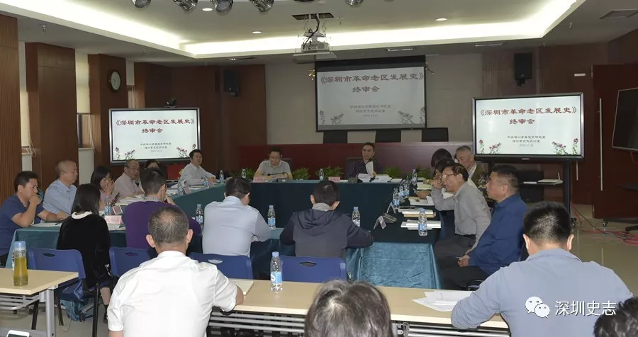 2019年11月14日上午,深圳市委党史研究室召开全市《革命老区发展史》终审会,受杨立勋主任委托,王地久副主任出席会议并讲话。各区(新区)史志机构负责人、工作人员及党史处全体同志参加会议。会议邀请中国文化名人大营救纪念馆馆长朱赤、中英街博物馆原馆长孙霄、深圳市东江纵队粤赣湘边纵队研究会会长李建国、市委党校博士王定毅、市文管办研究员周军等专家参加评审。