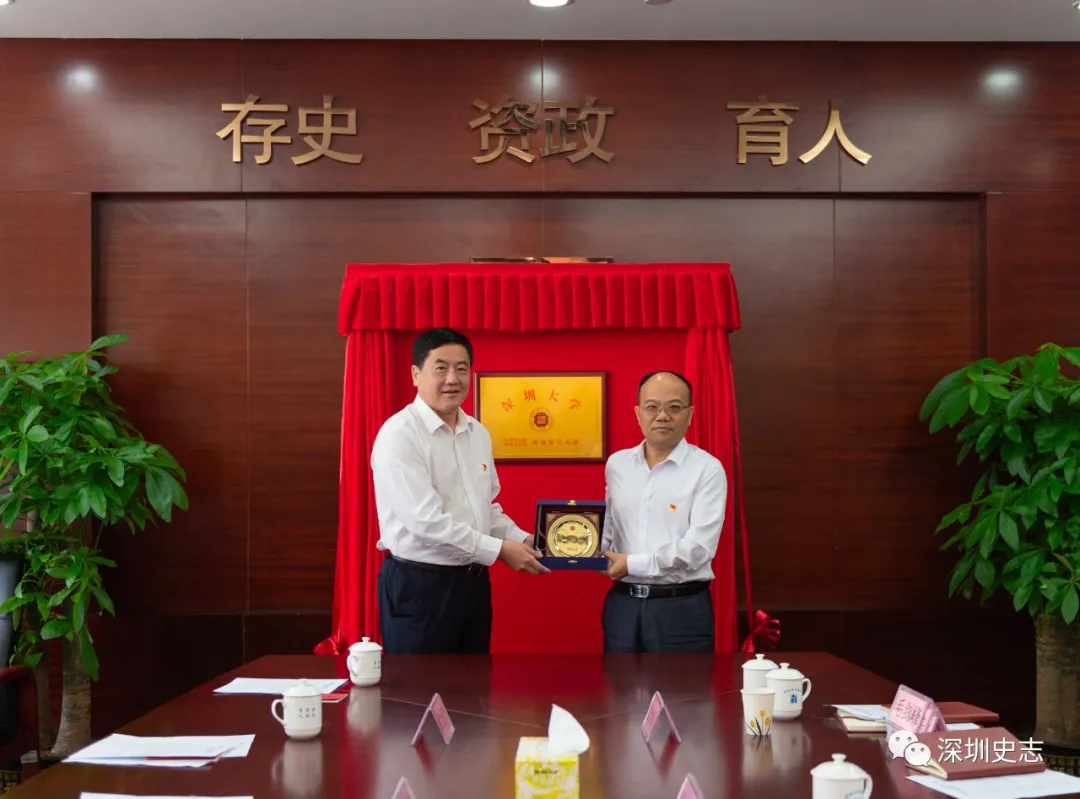 11月5日,深圳大学党史馆方志馆现场教学基地挂牌仪式在市史志办举行。中共深圳市委党史研究室、市史志办公室主任杨立勋,二级巡视员黄玲、副主任张妙珍以及各处室负责人,深圳大学党委副书记范志刚,党委常委、组织部、统战部部长戴纪锋以及各部门负责同志共20多人参加活动。