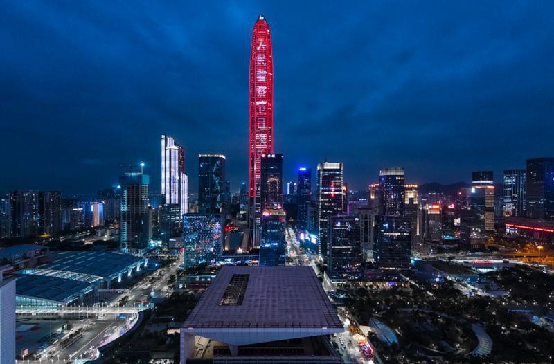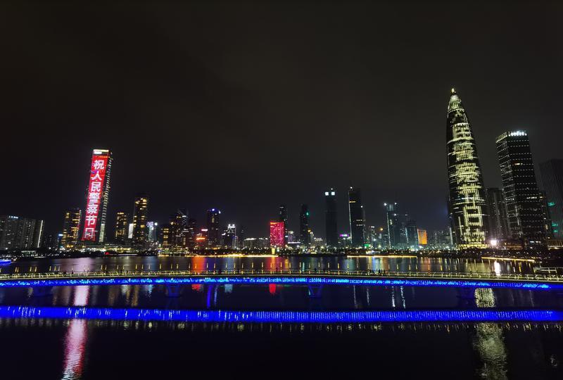 9日晚,平安金融中心大厦、京基100大厦、地王大厦、春笋、深圳湾一号、汉国大厦等深圳的地标建筑外立面上滚动播放着:“人民警察节日快乐”“致敬平安深圳守护者”等标语,城市里许多户外电子屏同时显示着同样的标语,不少社区宣传栏也张贴着相关主题海报,到处洋溢着节日的氛围。