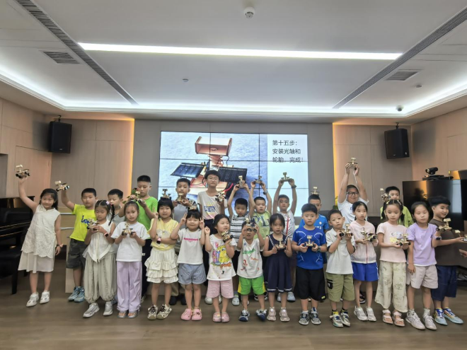 “科创空间”化身为社区里充满欢声笑语的科学乐园,一系列活动吸引了众多孩子热情参与。太阳能主题板块围绕“知识-实践-认知”主线,系统涵盖从基础特性、技术分类、环保价值到未来前景等内容,孩子们在动手制作风扇、汽车、飞机、卫星等模型的过程中,真切体验到光能向动能的转化。电能课程则从基本原理延伸至发电、应用与社会意义,学员通过组装智能机器、自动发球机、昼夜演示装置及星空投影仪,不仅掌握电路连接与电能传输的实际运用,更激发起对能源科技的浓厚兴趣。