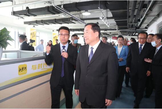 今天上午,参加新黄河客户端上线仪式的领导同志,来到济南报业大厦,参观新黄河客户端编辑部和新黄河客户端融媒指挥中心。