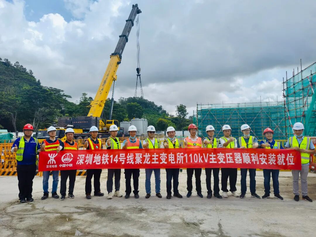 聚龙主所位于坪山大道与丹梓西路交叉附近绿地,为地下站,电气设备的布置采用地下开关楼的建筑型式,共分三层,所有电气设备均布置在户内。本次进场的两台110千伏主变压器,是容量为50兆伏安的气体式全密封变压器,单台重达80吨,是地铁设备系统中单体最重的设备,也是保证地铁14号线顺利“电通”的关键设备。