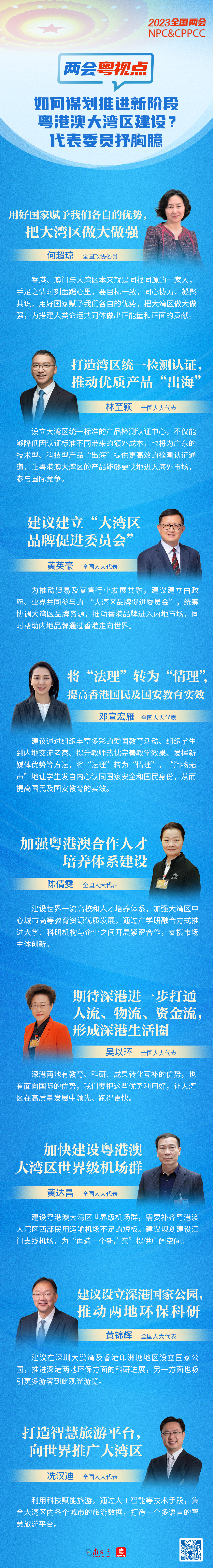 今年以来,随着内地与港澳全面恢复通关和粤港澳三地参访团频繁互动,“粤港澳大湾区建设如何走向纵深”更受关注。如何谋划推进新阶段粤港澳大湾区建设?来看代表委员们怎么说。