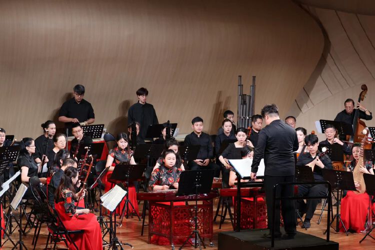 据介绍,这场音乐会由深圳市龙岗区文化广电旅游体育局主办,深圳市华韵民族乐团承办,作为2023年第六届深圳龙岗国乐艺术周开幕式音乐会,以“启航”为主题,分为四个篇章。由著名作曲家周成龙担任艺术顾问,翁正根担任艺术总监。曲目包括大家耳熟能详的《莫斯科郊外的晚上》、《甄嬛传》主题曲,跌宕起伏的音韵,在夏日的午后送来沁人心脾的古韵风华。