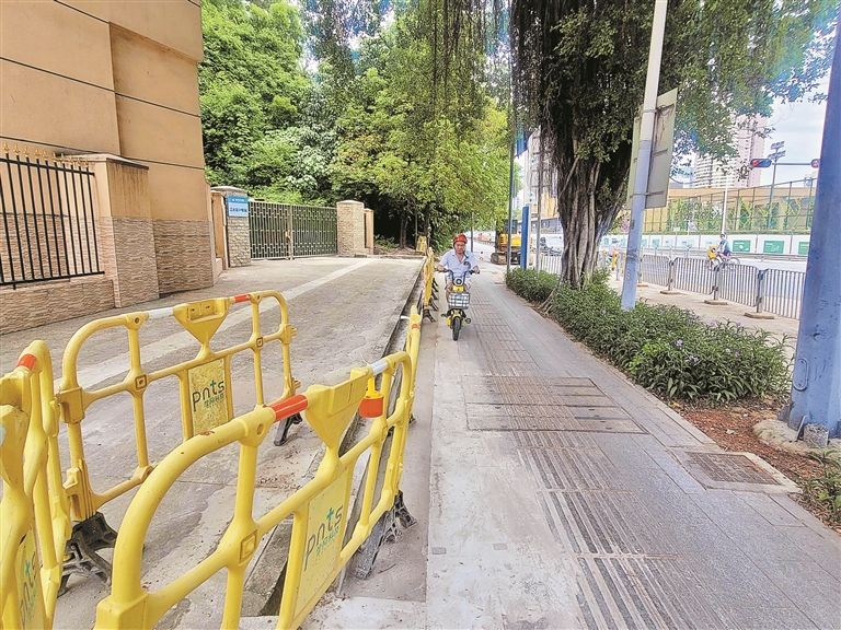8月9日上午11时许,深晚记者在现场看到排水沟旁有一排设有警戒线的护栏,且已经用水泥进行了封闭。路过的外卖小哥与市民纷纷向深晚记者表示,前两天,看到有施工人员在现场施工。“以后再也不用担心掉进排水沟了,为有关部门迅速解决问题点赞。”市民刘小姐说。