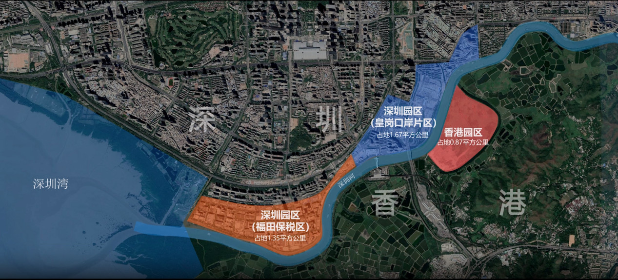 从地理位置上看,合作区处于深港两地融合发展“咬合处”,北邻深圳皇岗口岸的货运停车场,南抵香港新界西北区的落马洲,东临上步码头,西至皇岗口岸大桥,堪称“特区中的特区”。