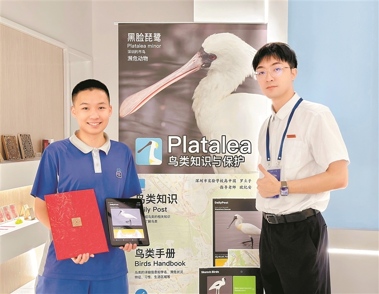 “这是我和老师用时半年一起开发的APP作品——‘Platalea(琵鹭)鸟类知识与保护’,在这个平板上已经可以下载使用了。”由浙江大学与苹果公司联合承办的中国高校计算机大赛——“移动应用创新赛”于近期结束。深圳实验学校高中园(以下简称‘深实高中园’)高二学生罗立子代表深实高中园参赛,从全国70个参赛团队中脱颖而出,斩获全国季军,并成为广东省唯一获奖的高中参赛队伍。