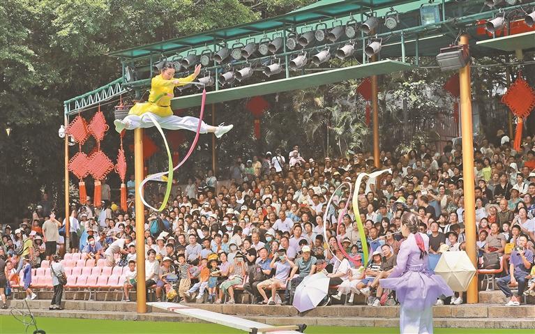 在锦绣中华民俗村,观看精彩演出。深圳特区报记者 李忠 摄