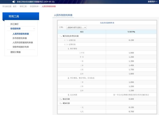 7月25日,交通银行宣布调降人民币定期存款利率10~20基点。