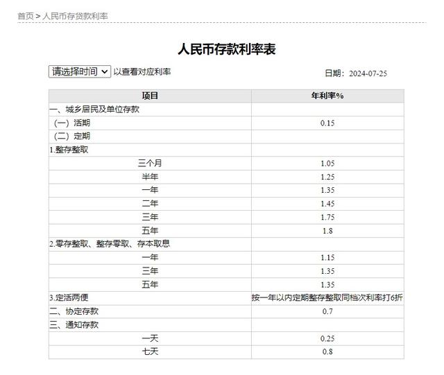 7月25日,工商银行官网显示,该行存款利率全面下调。其中,活期存款利率由0.2%下调至0.15%。